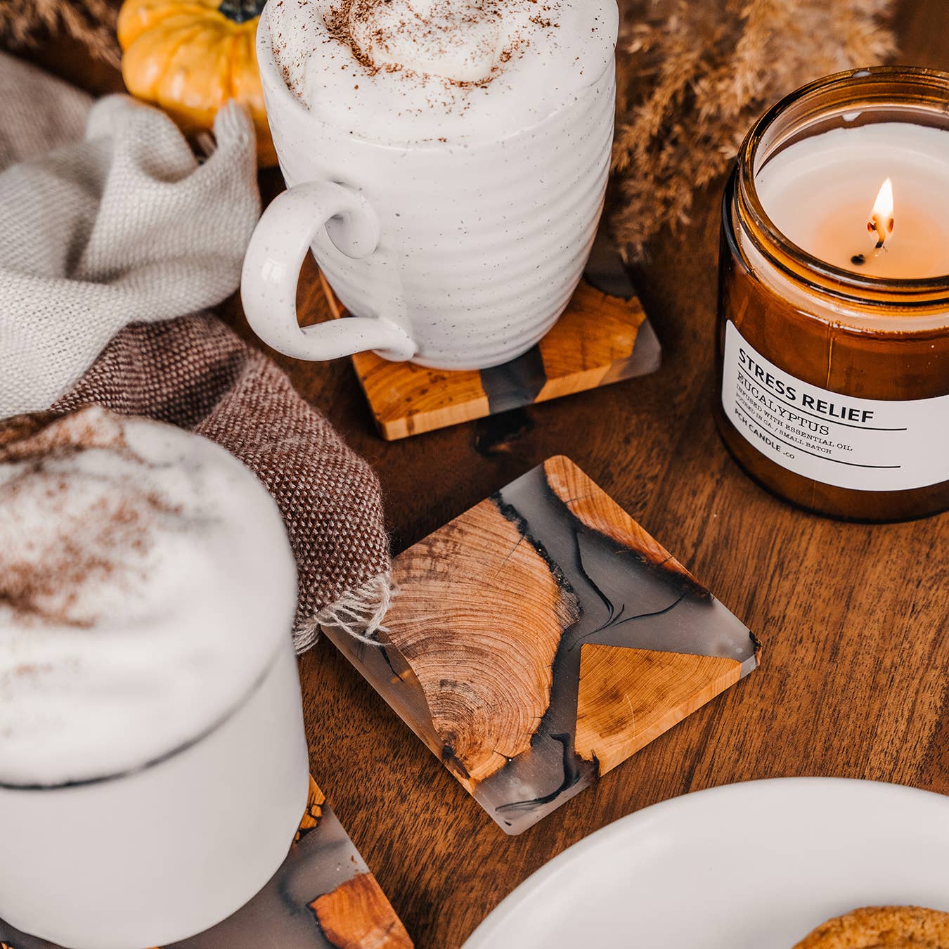 Handcrafted Cedar & Resin Coaster Set-(4 Coasters in a Set)